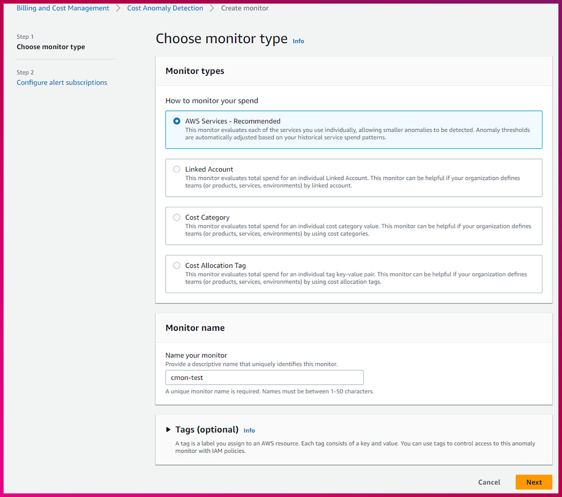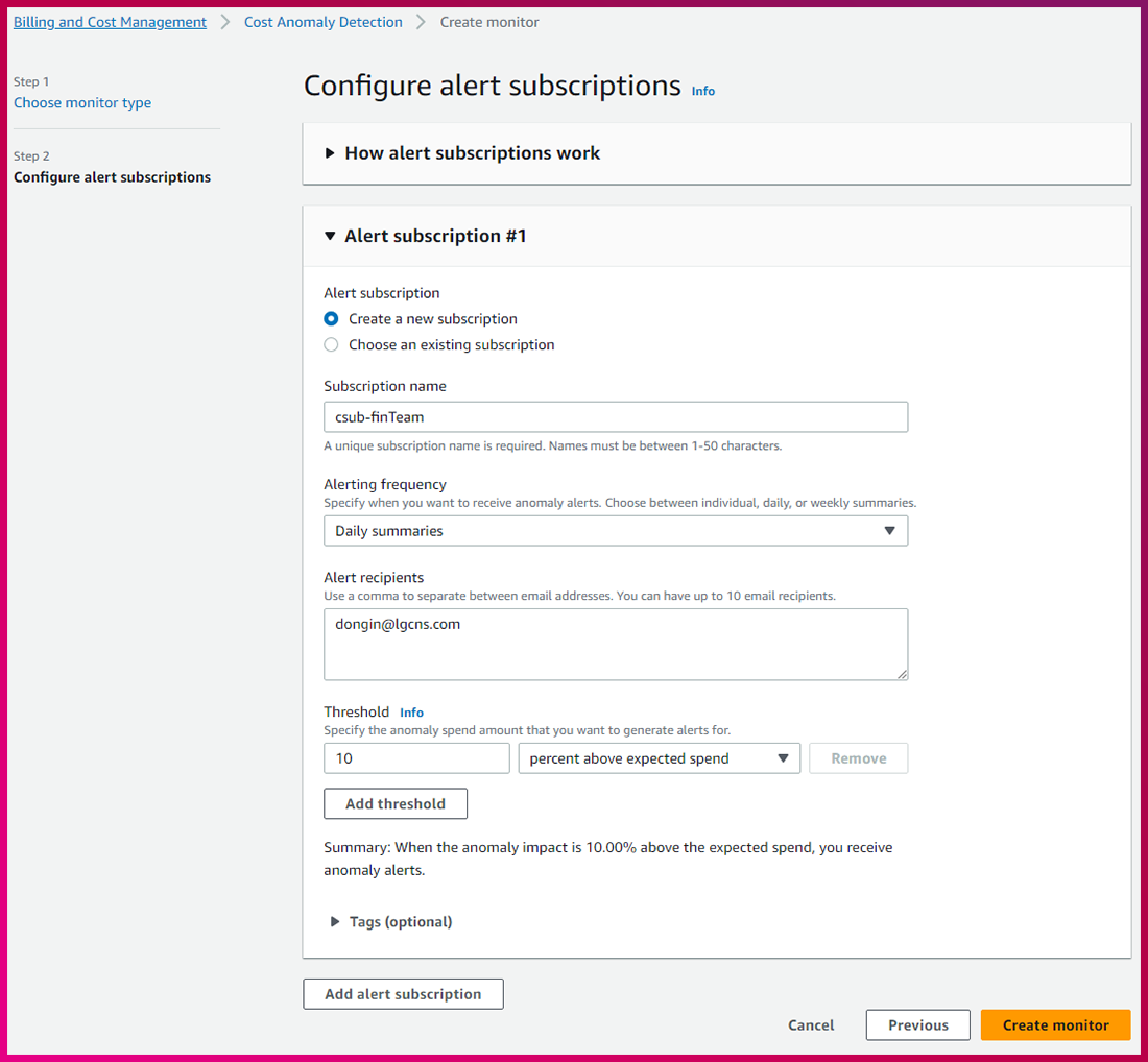 2. Cost Anomaly Detection 사용을 통한 비용 모니터링