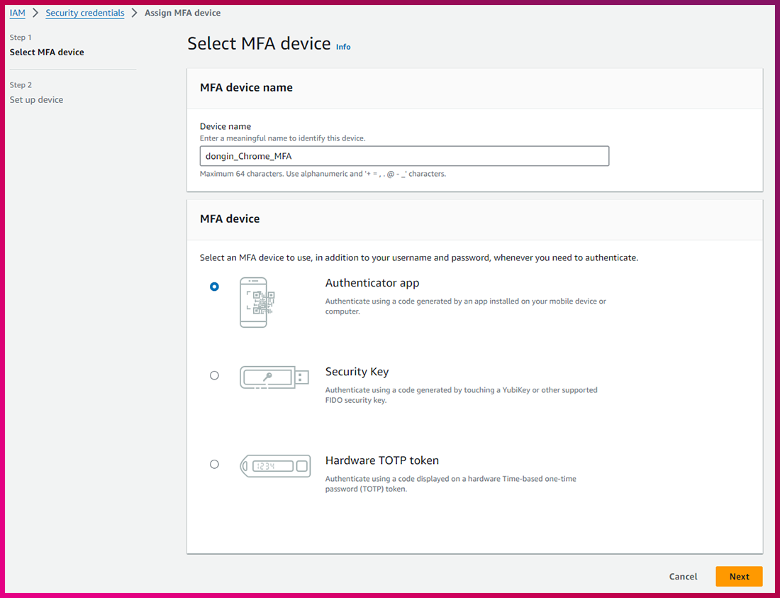 (2) MFA device 설정