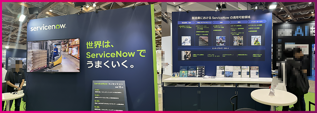 EXPO 전시장은 동관(East Hall), 남관(South Hall)에서 개최되었는데요. Hall을 이동할 때 셔틀을 제공할 정도로 큰 규모를 자랑했습니다. Design Manufacturing Solution Expo, Manufacturing DX Expo, Industrial AI/IoT Expo를 주제로 다룬 South Hall에서는 salesforce, servicenow와 같은 글로벌 솔루션들과 NEC, TOSHBA 등의 일본 전통기업들의 모습도 많이 볼 수 있었습니다. 이번 전시에서는 모두 제조기업에 필요한 솔루션과 서비스가 어떤 것이 필요할지를 고민하여 부스를 마련한 점도 눈에 띄었습니다.