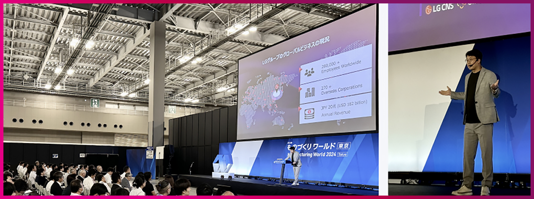 각 주제별 Expo 전시관뿐만 아니라, 일본의 대표적인 제조 트렌드와 선진 사례를 접할 수 있는 컨퍼런스도 내로라하는 기업들의 연사 특강으로 알차게 구성되었습니다. 특히 LG CNS의 기업형 SaaS 브랜드인 SINGLEX의 김대성 상무가 연사로 초청되어 그 자리를 더욱 빛냈습니다. 이번 강연은 참가자들에게 큰 영감을 주며, 행사의 의미를 한층 더 깊고 풍성하게 만들었는데요. 지난 4월 Japan IT Week Spring에서 LG CNS 부스를 통해 첫 발을 내디딘 SINGLEX는 이번 Manufacturing World Japan에서도 제조업의 디지털 변혁(DX)을 주제로 청중과 긍정적인 소통을 이어갔습니다. 이 자리를 통해 글로벌 시장에서 더욱 성장하는 SINGLEX의 모습을 확인할 수 있었습니다.
