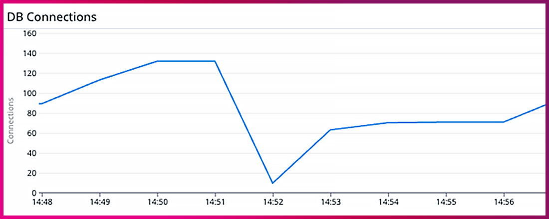 RDS database_connections 지표는 Blue/Green 배포가 진행될 때, DB Connection 횟수가 일시적으로 감소한 후 다시 정상으로 돌아오는 현상을 보였습니다. 이는 1분 단위로 측정되는 평균값이기 때문에 일정한 오차 범위가 존재할 수 있습니다.