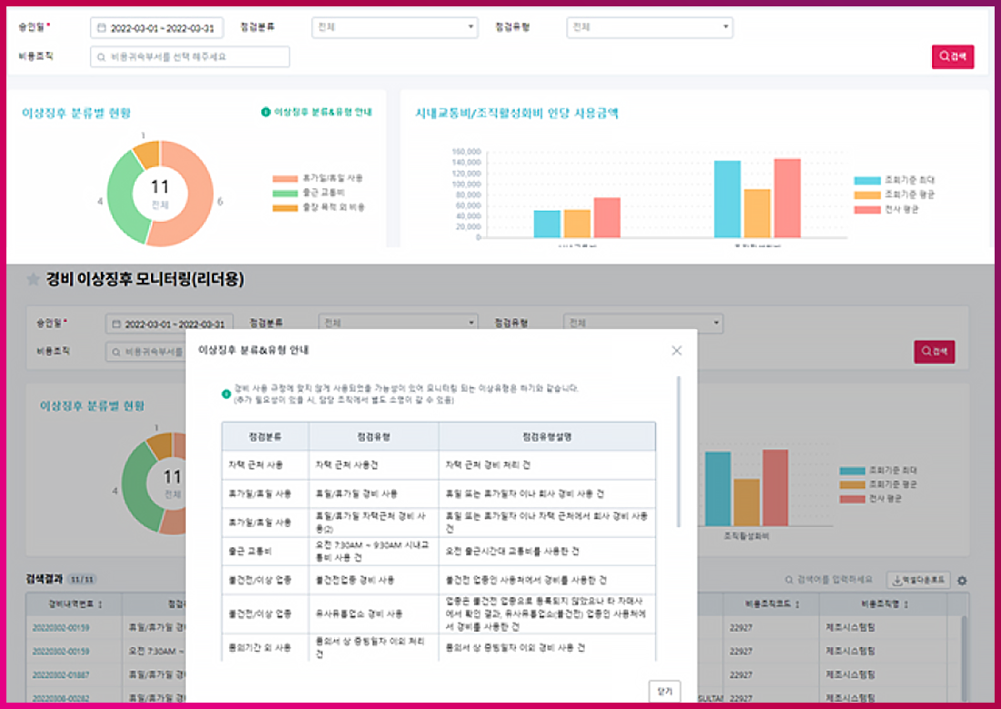 종합적인 경비 사용 현황과 트렌드를 쉽게 파악할 수 있어 더 나은 예산 책정과 비용 절감 전략 수립이 가능해집니다.