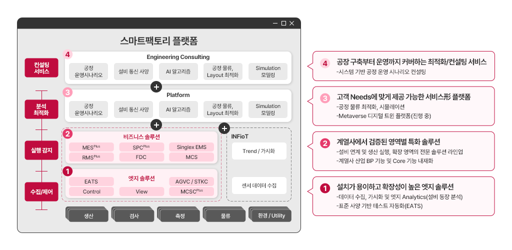 공장마다 △생산 환경 △공정 구조 △기술 수준이 상이하기 때문에 일률적인 모델이 아닌 기업 맞춤형 구조 설계가 선행돼야 합니다. 이를 통해 투자 효율을 높이고 확장성 있는 체계를 만들 수 있습니다.