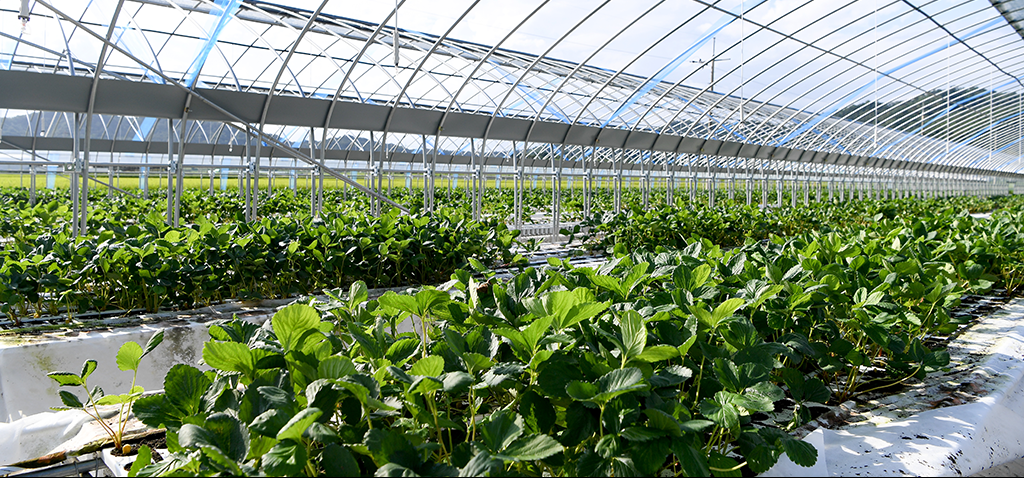 온실형 스마트팜은 유리나 플라스틱 소재로 외부를 덮은 반밀폐형 구조로, 자연광을 활용하면서도 온도, 습도 등 주요 환경 요소를 일정 수준까지 제어할 수 있는 것이 특징입니다. 계절과 기후의 영향을 일부 받지만, 상대적으로 넓은 재배 면적을 낮은 비용으로 확보할 수 있다는 장점이 있습니다.