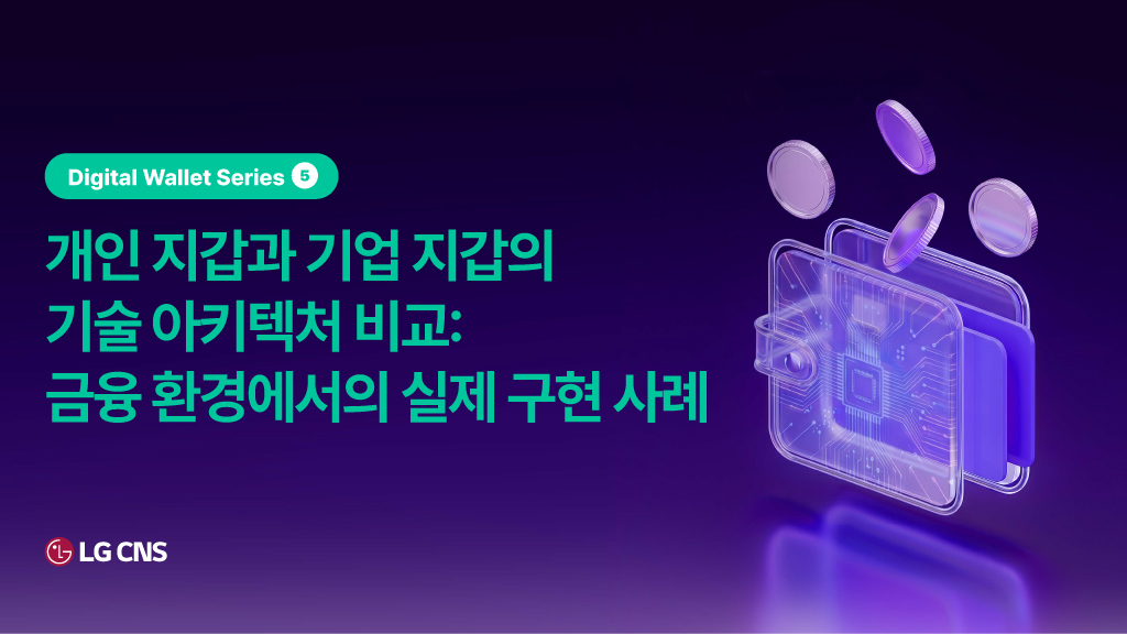 지금까지 보안, 통합성, 사용성, 확장성 측면에서 금융회사의 요구와 사용자 경험 관점을 함께 고려한 범용 디지털 자산 지갑의 시스템 구조를 살펴보았습니다. 이번 시리즈에서는 실제 구현 사례를 중심으로, 디지털 자산 지갑을 개인 지갑과 기업 지갑으로 구분하여 각 용도에 따라 적용된 기술과 설계 방식에 대해 알아보겠습니다.