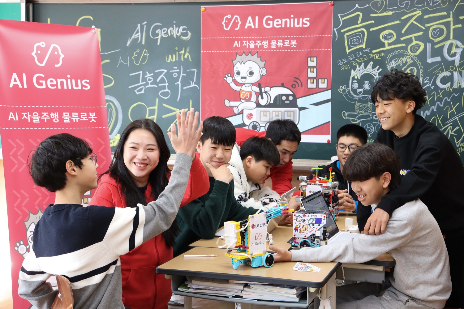 LG CNS는 15일 경북 영천 소재의 금호중학교를 찾아가 100여명의 중학생들과 함께 올해 첫 AI지니어스 활동을 시작했다. 이날은 금호여중 학생들도 활동에 참여했다. LG CNS는 금호중을 시작으로 연말까지 38개 학교, 3,100여명의 학생들에게 AI지니어스 교육을 무상으로 제공할 계획이다.