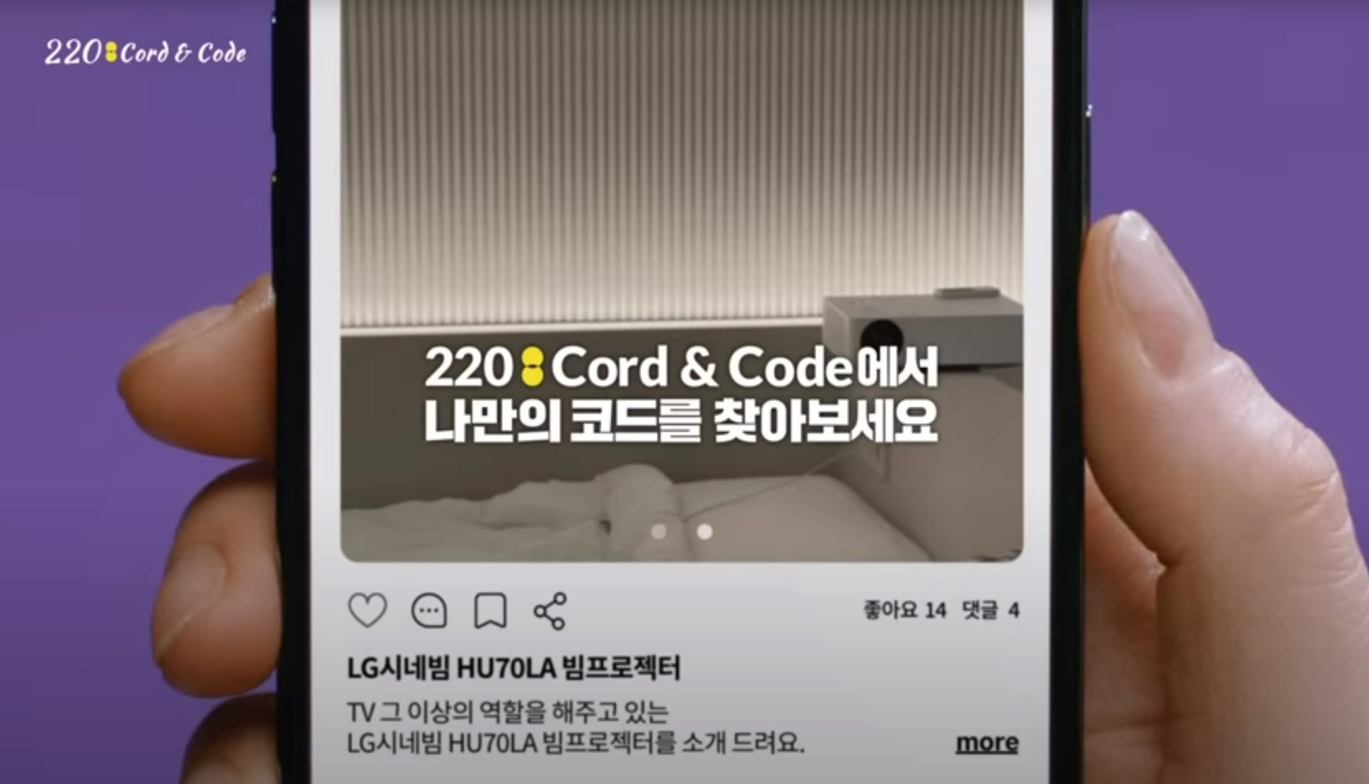 가전 커뮤니티 플랫폼 '220 코드 앤 코드(Cord & Code)' 광고 영상이 100만 조회수를 돌파하며, 화제를 모으고 있다.