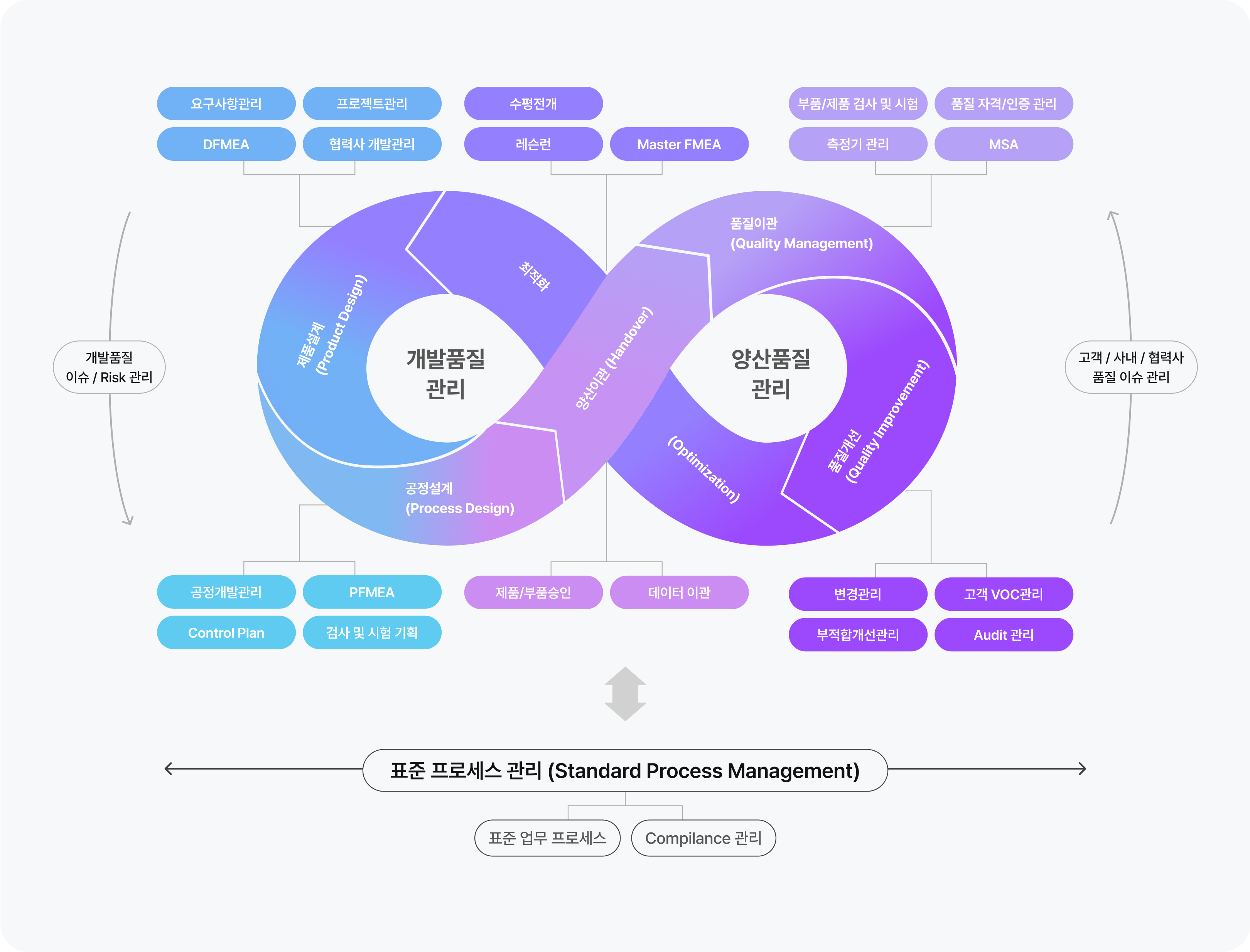 고객-사내-협력사 개발 절차 및 고객 요구사항에 따른 제품 부품 개발을 통합 관리